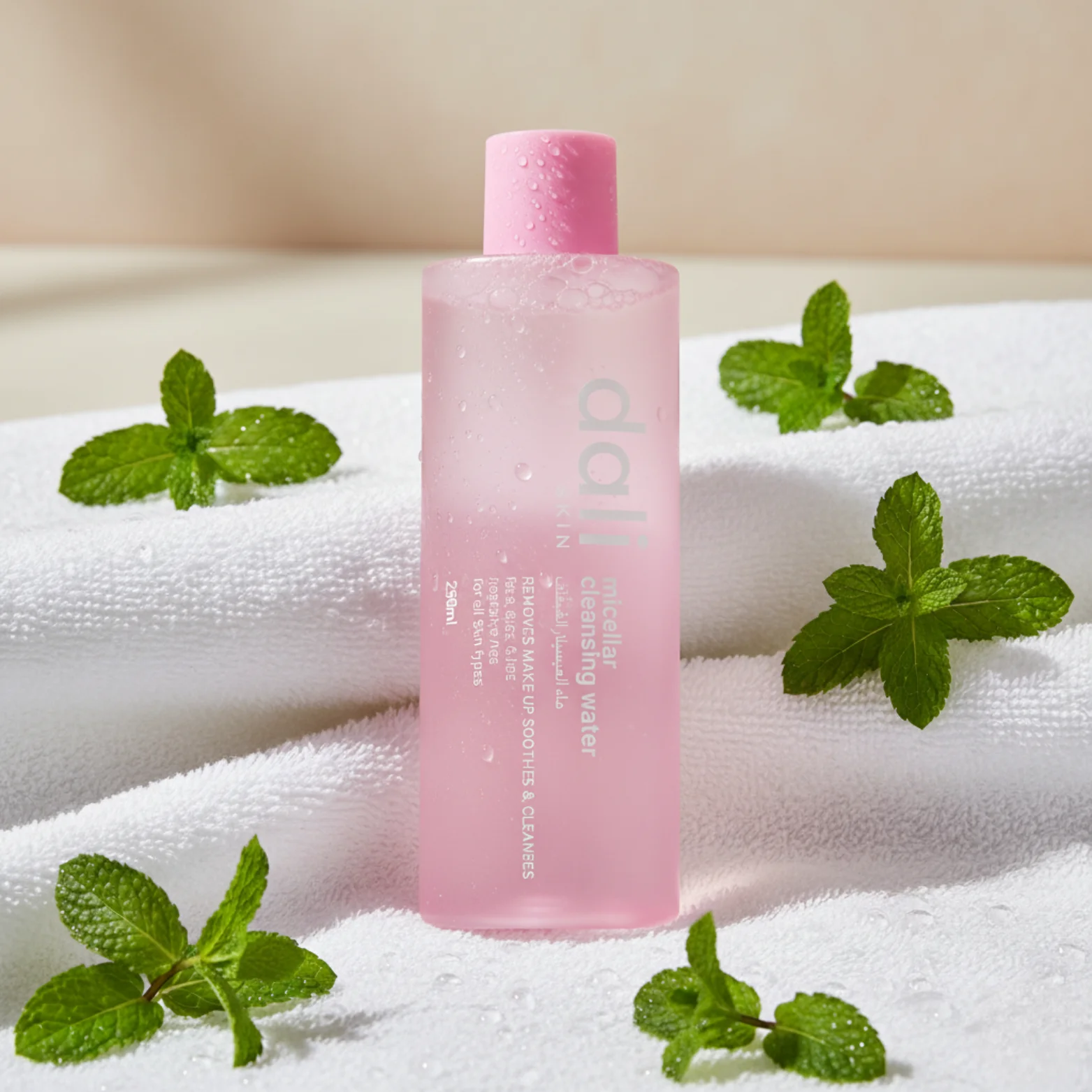 Eau micellaire Dali. Nettoie et démaquille en douceur. Élimine les impuretés sans rinçage. Pour peaux sensibles tunisiennes. Livraison express.