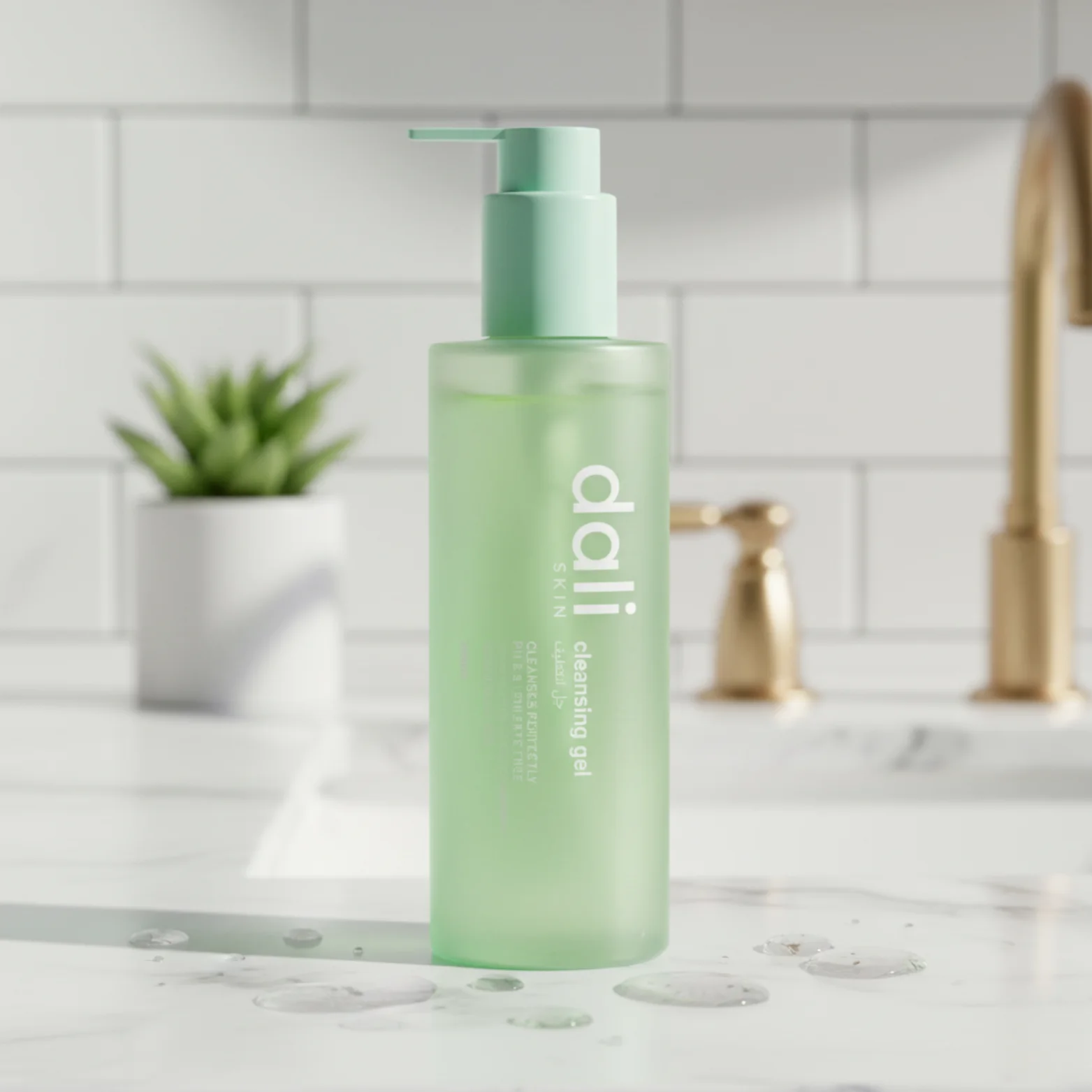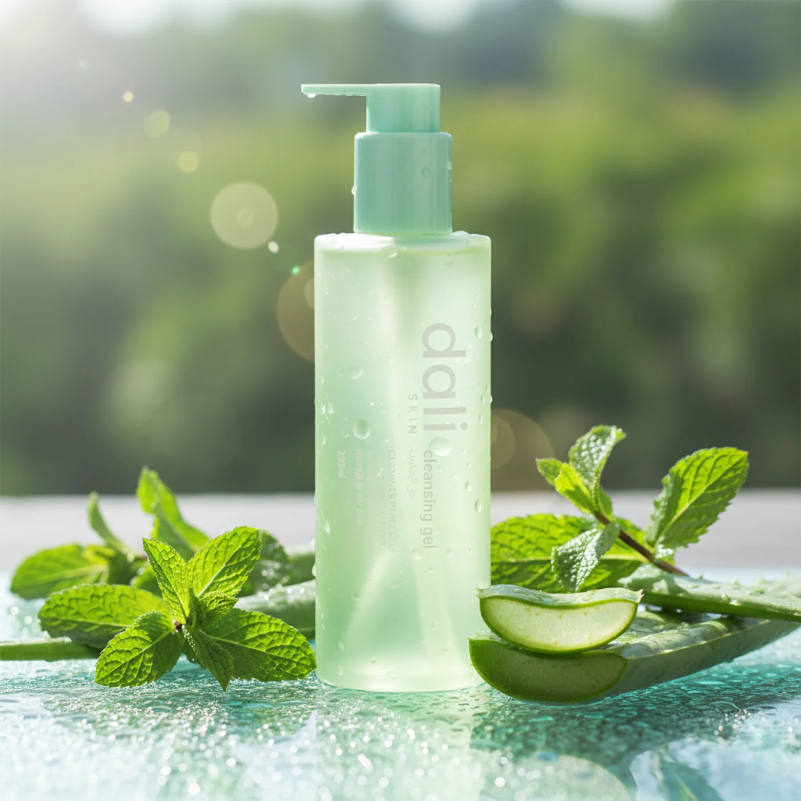 Gel nettoyant Dali Tunisie. Élimine sébum et impuretés. Formule non comédogène au thé vert et acide lactique. Parfait pour le climat tunisien. Livraison rapide.